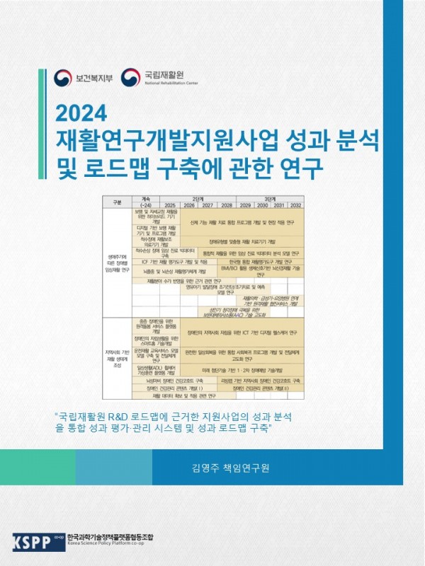 재활연구개발지원사업 성과분석 및 로드맵 구축에 관한 연구 관련링크 페이지 정보 작성일26-03-04 16:19 조회657회 본문 국립재활원 R&D 성과체계 및 성과로드맵 구축 이전글 다음글 목록